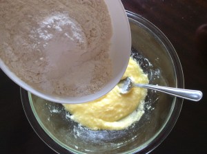 Mix the softened butter with the sugar and almond flavoring. Then add the egg and pinch of salt. Finally, add the flour.