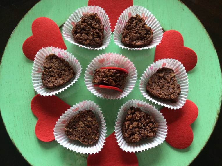 Heart shaped chocolate crispy rice bars: perfect last minute Valentine’s treats