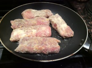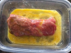 Once you have all your rolls done, dredge with the beaten egg and then breadcrumbs, coating evenly.