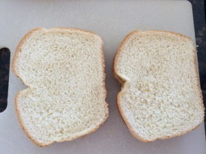 Cut the sandwich slices in two and remove the crust.