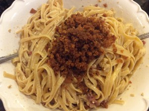 – My daughters (4 and 2 years old) don’t like this pasta sauce because of the walnuts. I mention that because maybe this is not the most “kid friendly” pasta to prepare!