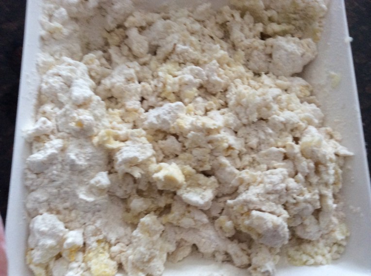 Peel the potatoes, and mash with potato masher. Put the mashed potatoes into a bowl, form a hole in the center using your fingers, then add the egg and flour, and mix with a fork. As you will notice, I used two eggs in these pictures, because my family LOVES gnocchi, so each time I have to make double quantity! 🙂