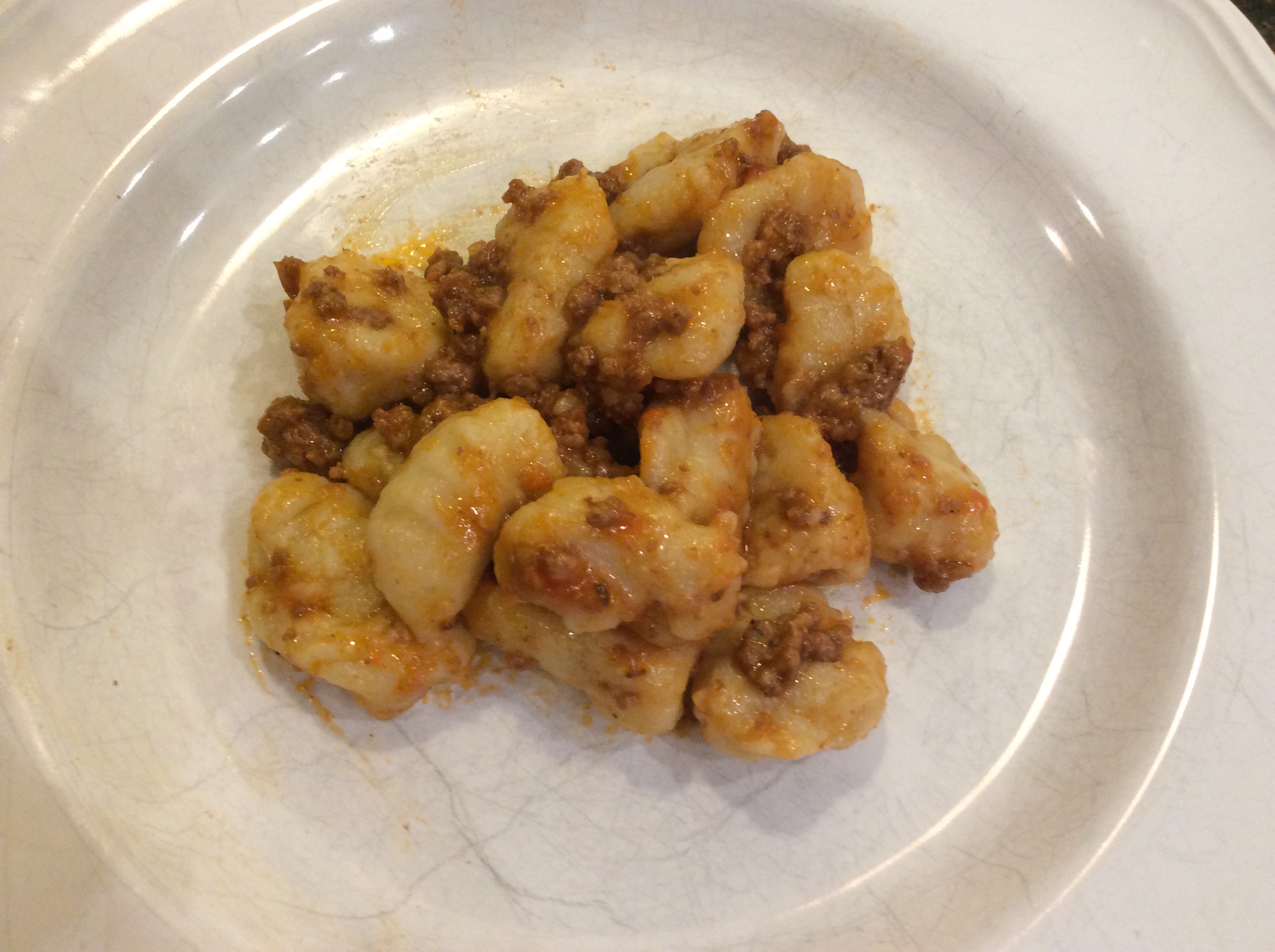 – As you can guess from the last picture of this post, my favorite Gnocchi dressing is Ragu’ sauce, but I know that many people love them dressed with tomato sauce or melted blue cheese. Parmesan, however, is not an option; to get the best taste from Gnocchi, you should use the original Italian Parmesan!