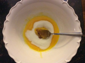 In a third bowl, add the sugar and the vanilla extract to the yolks and beat with an electric whisk for few minutes to allow the mixture to incorporate as much air as possible.