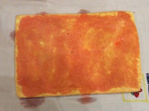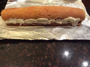 When cooled, gently unroll the cake onto a piece of aluminum foil, and coat with jam.