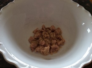 In the meanwhile, prepare the following: in a bowl combine the tuna, the lemon juice, and the cappers. (Before combining the capers, be sure to squeeze them out using your hand.)
