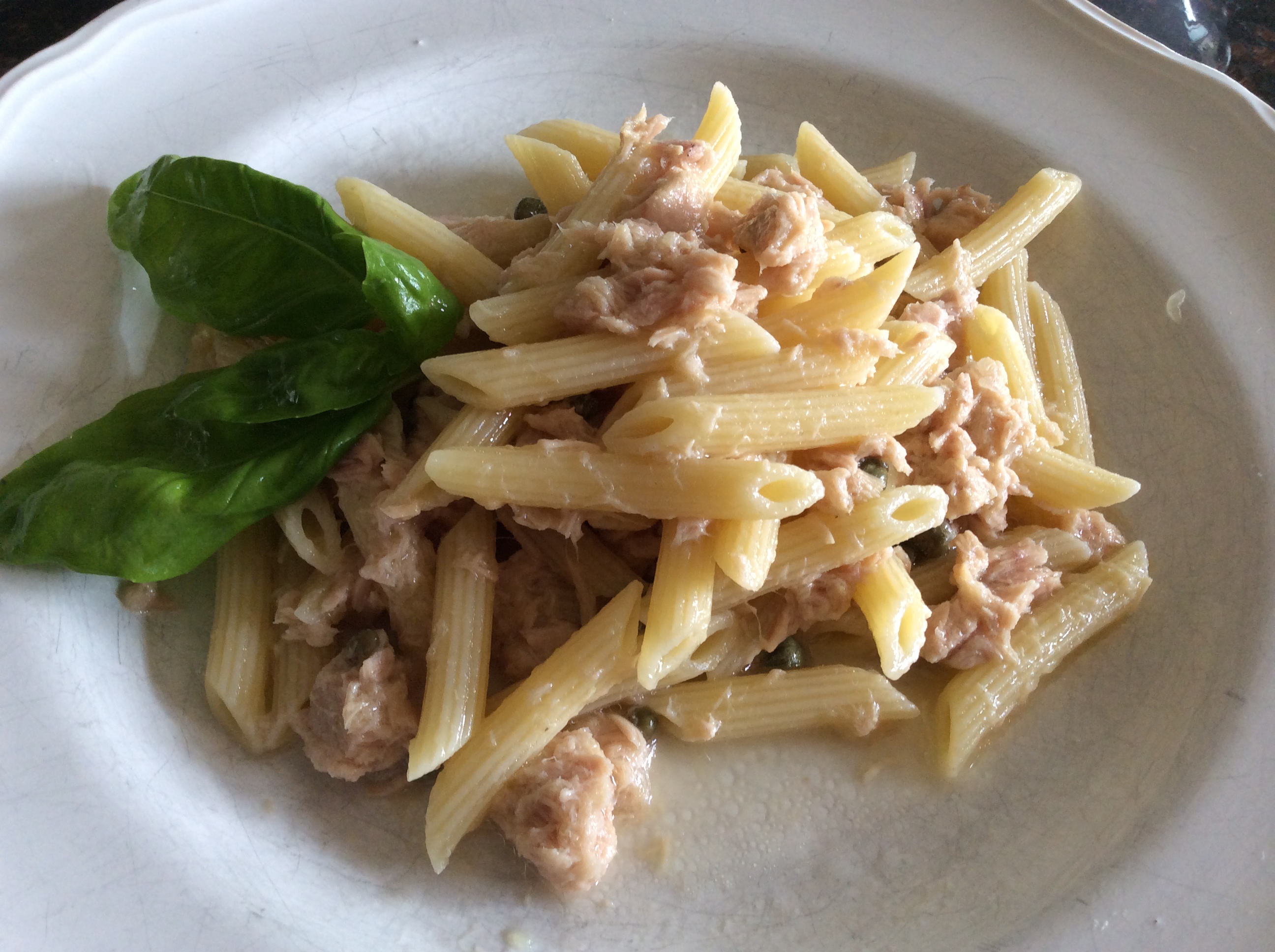 The cappers and lemon juice in the pasta salad help to balance and tone down the typically strong taste of tuna, and the lemon juice acts as light dressing, giving to the dish a pleasant, fresh aroma- perfect for summer!