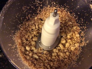 First of all, grind the Torrone (and any extra nuts, if using) in a food processor.