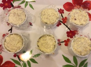 Portion out into 6 ramekins, lined with plastic wrap. Then transfer into the freezer for about 3-4 hours.