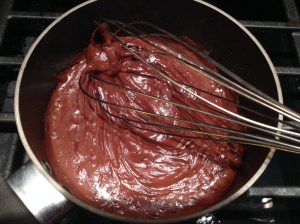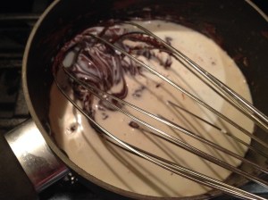 Before serving the dessert, melt the chocolate in a double boiler (or microwave) and mix it with the remaining whipped cream.