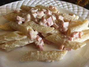 HAM AND WHITE CREAM FUSILLI: a fast, easy, tasty and family friendly Italian style pasta