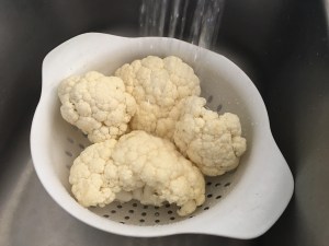 Start by cleaning the cauliflower. Separate the heads from the steams, and wash.