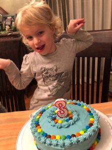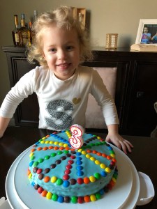 As you already could imagine, even If the request for the cake was a “blue one” I had no intention to buy the “boxed” icing or frosting (which is very popular here in US). Since my daughter doesn’t like butter frosting, I opted for a white chocolate ganache, made by following my instinct after surfing and reading many recipes on line. Since I made the cake two times, the first time I melted the white chocolate by double boing it, and mixed the heavy cream as it was without whipping it. It takes few minutes to melt, and it turned out very shiny but a little too liquid, even if I let the ganache rest in the refrigerator overnight. I added the edible blue die before to frost the cake and unfortunately I had to struggle to make the M&M keep their spots while I decorating the cake. The second time, I double boiled the chocolate and add the whipped cream to the melted chocolate, a little a time, trying to keep the cream fluffy. I let it rest in the refrigerator for about two hours, then add the edible blue die and it turn out perfectly compact (so ideal to add the M&Ms) but not shiny (no mirror or fondant effect).