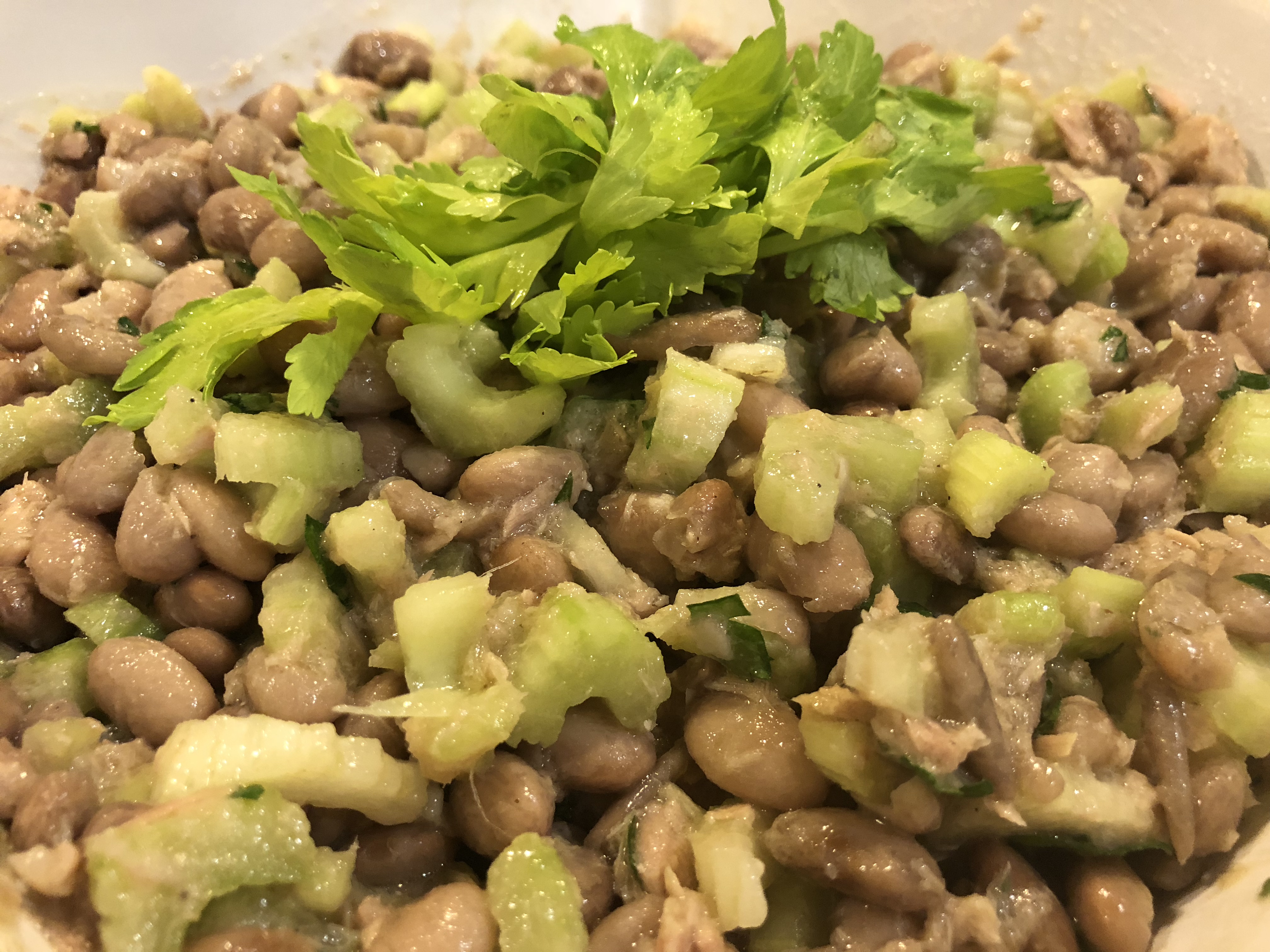 Celery, anchovies paste and tuna beans salad: low carb, loaded of protein and good fat