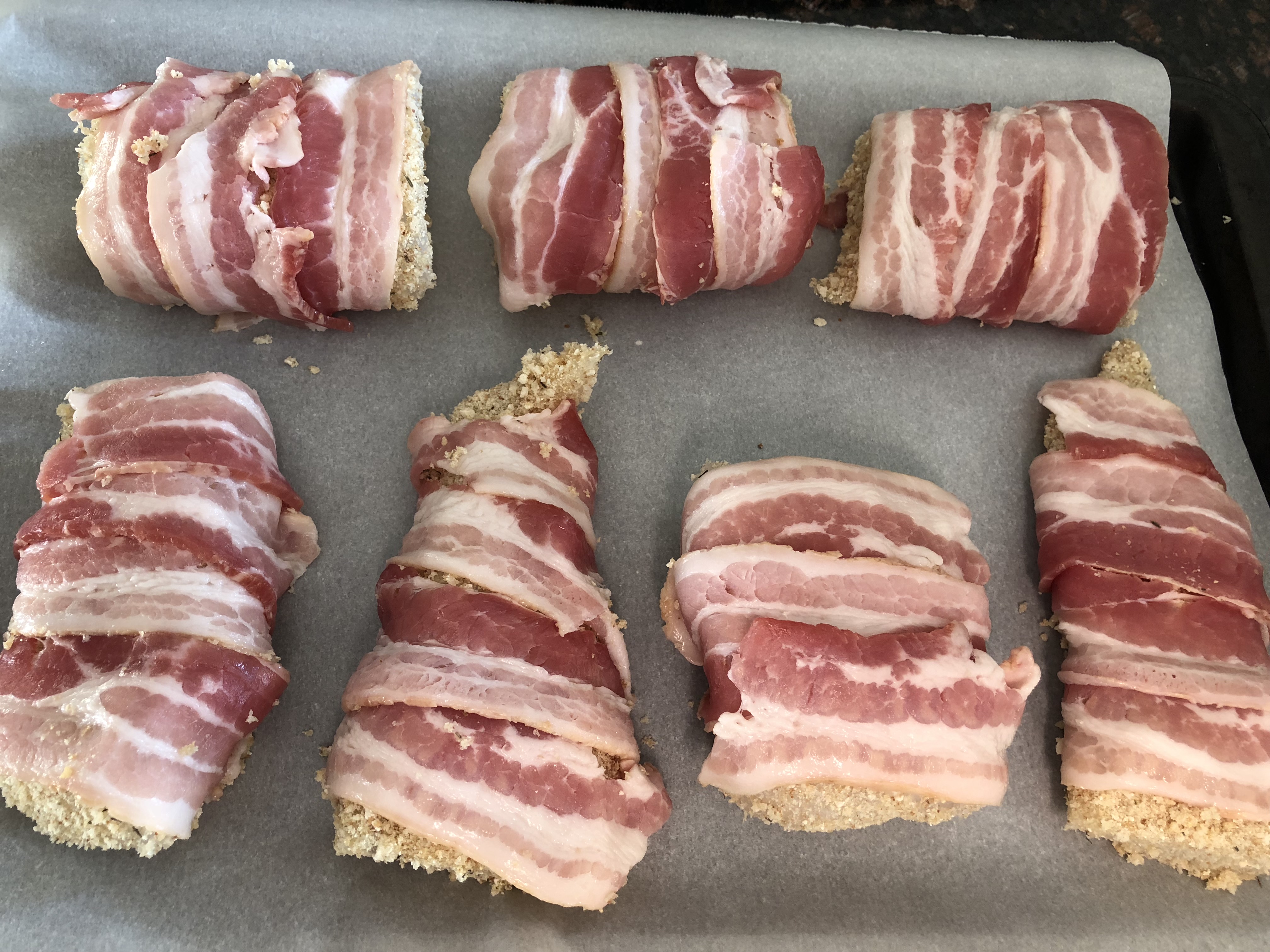 Oven baked, bacon wrapped, cod fish. Light, crunchy, and so good!