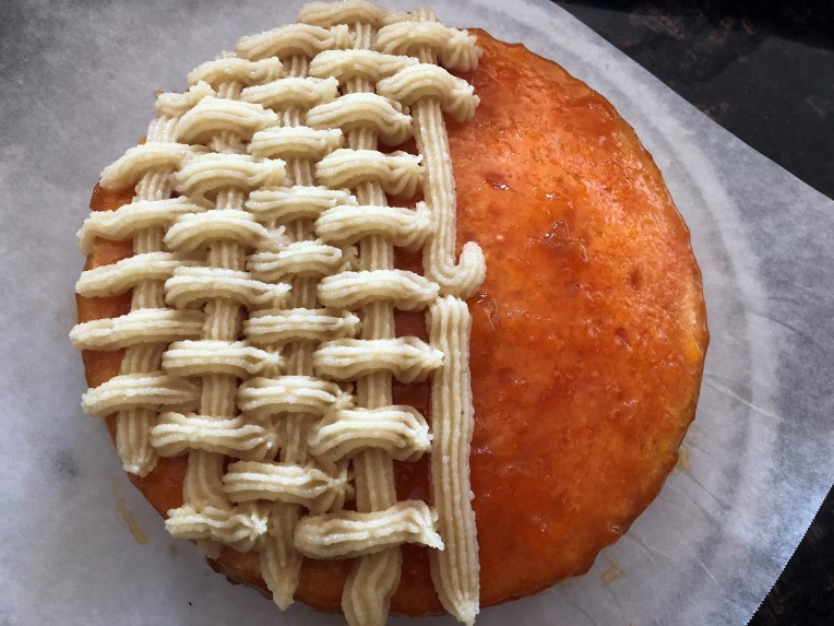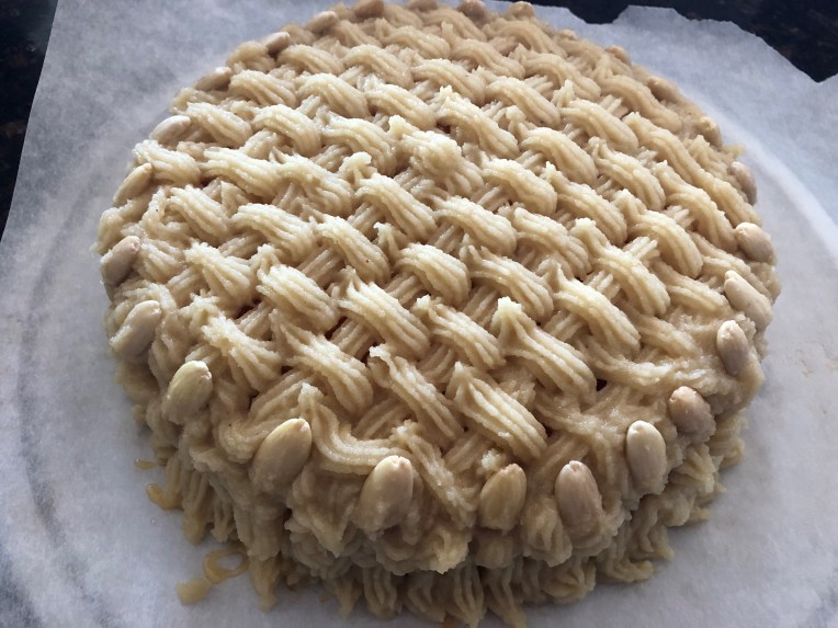 Decorate the cake with the almond paste using a SAC with a Star Tip and (optional) few peeled almond.The traditional Sicilian “Delizia” is decorated with a “basket” pattern, which is quite easy to make, just take a look to the following pictures.