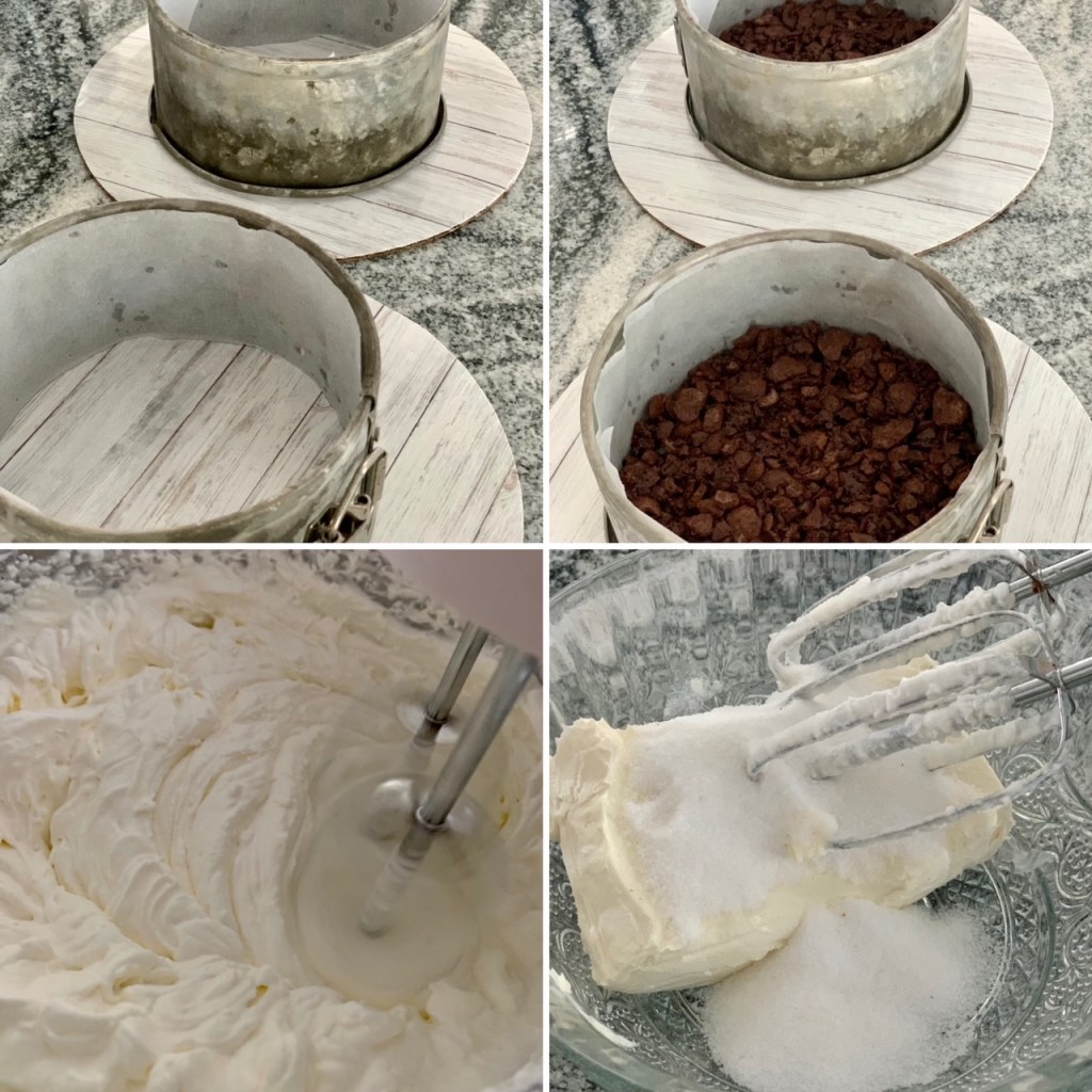 - BEFORE STARTING MAKE SURE TO: A. Prepare the spring form ring by lining it with parchment paper and placing it on a cake pad (or any serving dish you prefer); B. Take the cream cheese out of the refrigerator; C. In a bowl dissolve the gelatine powder in 1/3 cup water.