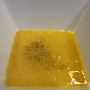 In a good sized bowl (you will need to fit all the spaghetti and bacon in it) beat the yolks and the egg. Add the parmesan cheese and the black pepper and mix altogether, stirring very well. Honestly, when I cook for my family, I avoid the black pepper at this stage, and instead my husband and I just add it on top of our spaghetti once it’s plated.