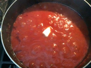 When your sauce reaches the boiling point, add the butter and as soon as the butter melts, add the beef buillon.